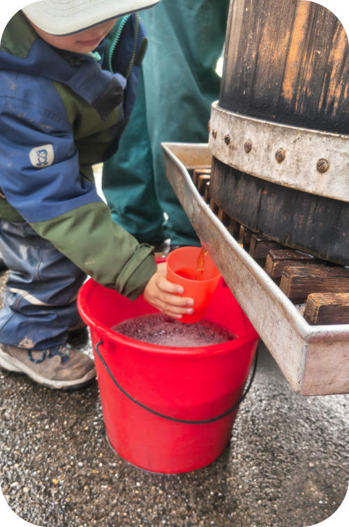 dem selbst gesammelten Fallobst Apfelsaft gemacht